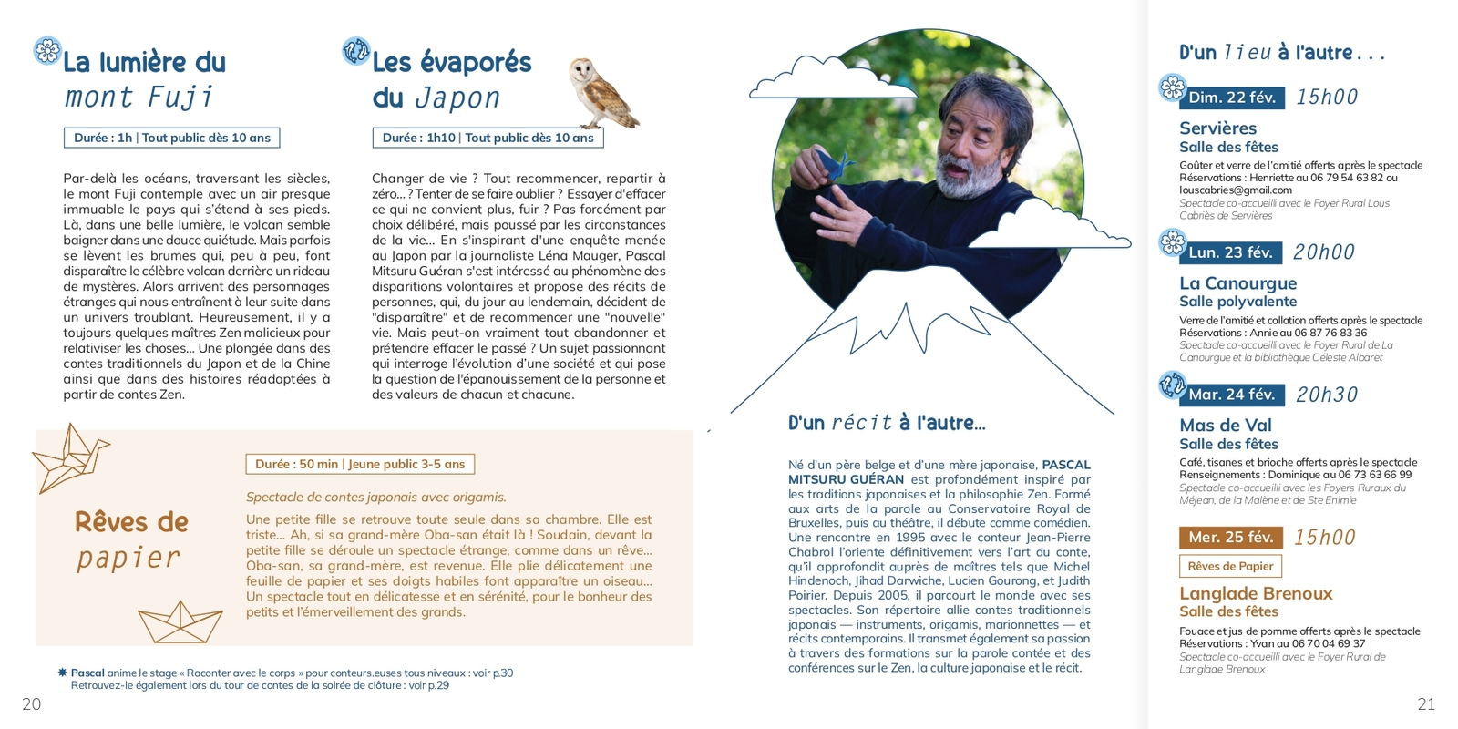 Cette année découvrez le spectacle "Les évaporés du Japon" de Pascal Mitsuru Guéran (durée 1h10, tout public dès 10 ans).